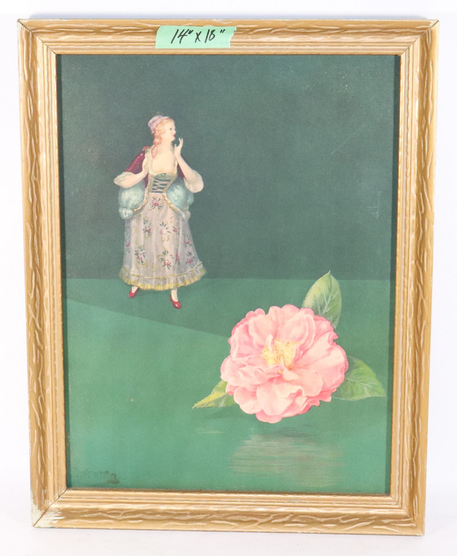 VINTAGE 14" X 18" FRAMED WOMEN AND FLOWER PICTURE
