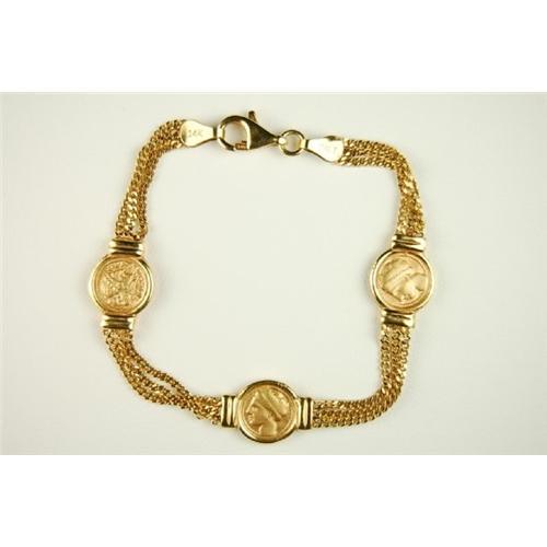 <tr><td>Title:VINTAGE 14K GOLD BRACELET W 3 GOLD COINS</td></tr>