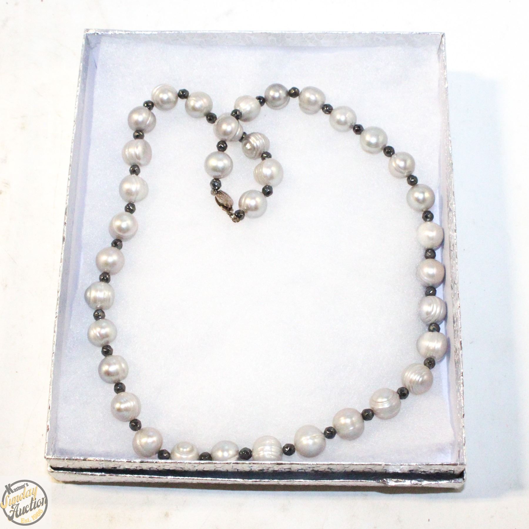 VINTAGE 18" GREY PEARL NECKLACE