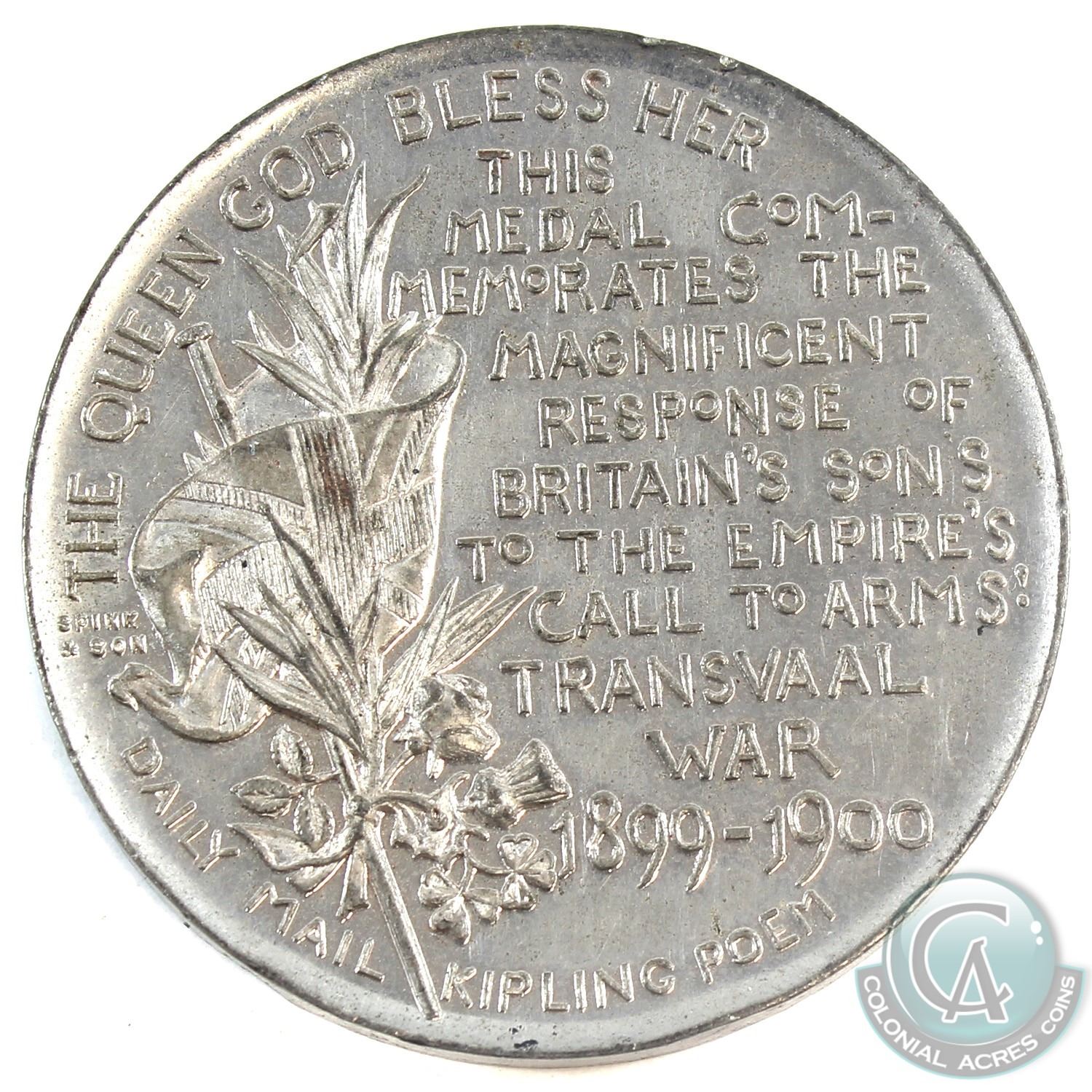 VINTAGE 1899-1900 Transvaal War The National Commemorative Medal "This Medal Commemorates the Magnificent Response of Britain's Sons to the Empire's Call to Arms!". 45mm diameter.