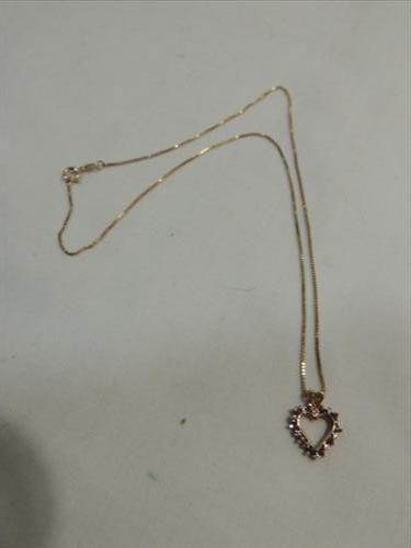VINTAGE 18K GOLD OVER STERLING NECKLACE: 9 DIAMOND & 10 RUBY HEART SHAPE PENDANT. AS SHOWN. VIEW PICTURE OFR DETAIL.