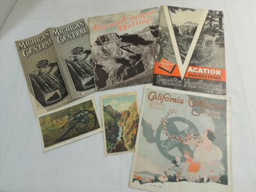 VINTAGE 1920S & 30S RAILWAY TRAVEL BROCHURES: MICHIGAN CENTRAL, SANTE FE, PACIFIC NORTHWEST, AND MORE. AS SHOWN. VIEW PICTURE FOR DETAIL.