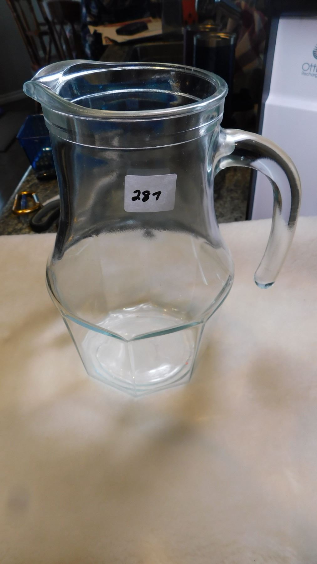 VINTAGE 1930’S CLEAR WATER PITCHER, OCTAGONAL BASE