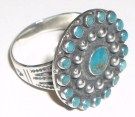 VINTAGE 1930'S *ZUNI INDIAN* STERLING SILVER & TURQUIOSE RING WITH 18 STONES!! ***Coin, Currency & All Items Listed in this auction - Grades, Conditions and Values are not Safe Deposit Coins LLC Responsibilty. Grades, Condition and Values are determined by Consigner(s) & Buyers ONLY***