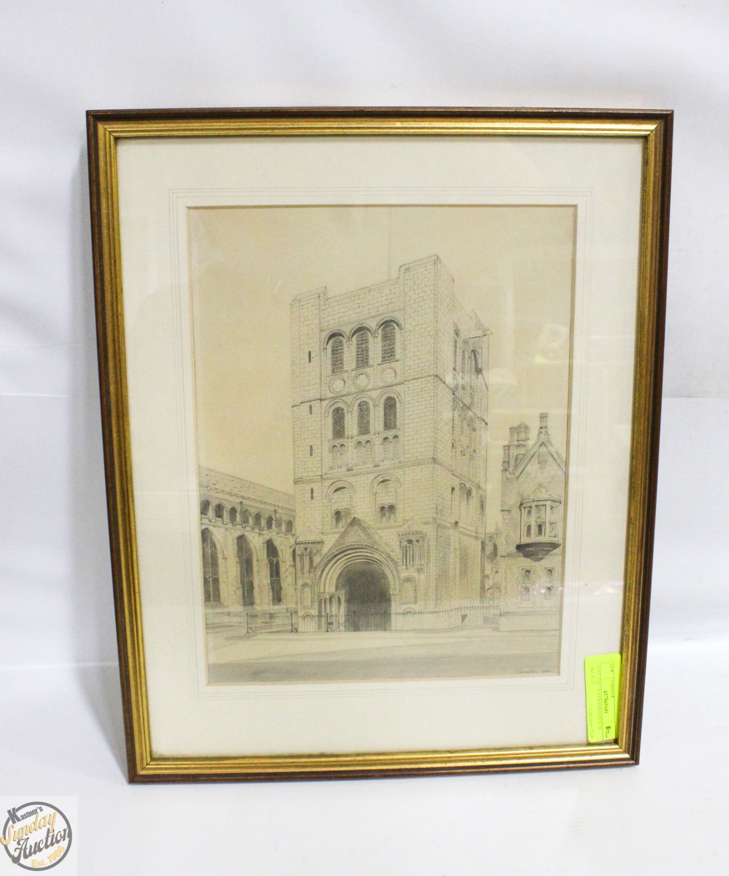 VINTAGE 1934 FRAMED PENCIL SKETCH