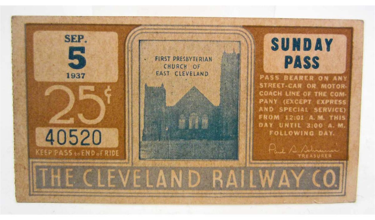 VINTAGE 1937 TRAIN TICKET THE CLEVELAND RAILWAY CO.