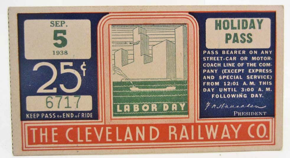 VINTAGE 1938 TRAIN TICKET THE CLEVELAND RAILWAY CO.