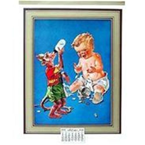 BOY WITH MONKEY - 1939 CALENDAR -- 1939, 15" x 19", by Stuart, baby plays with organ grinder monkey
