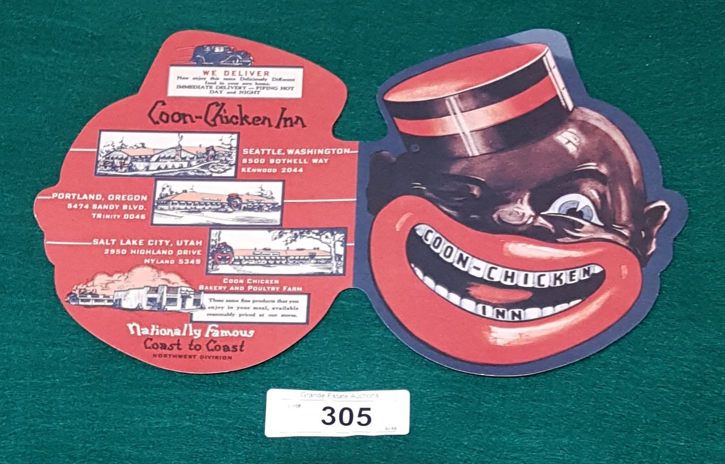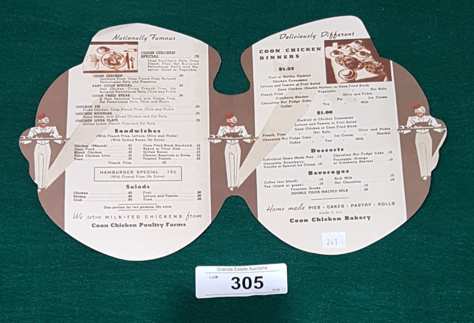 VINTAGE 1940'S BLACK AMERICANA COON-CHICKEN INN MENU