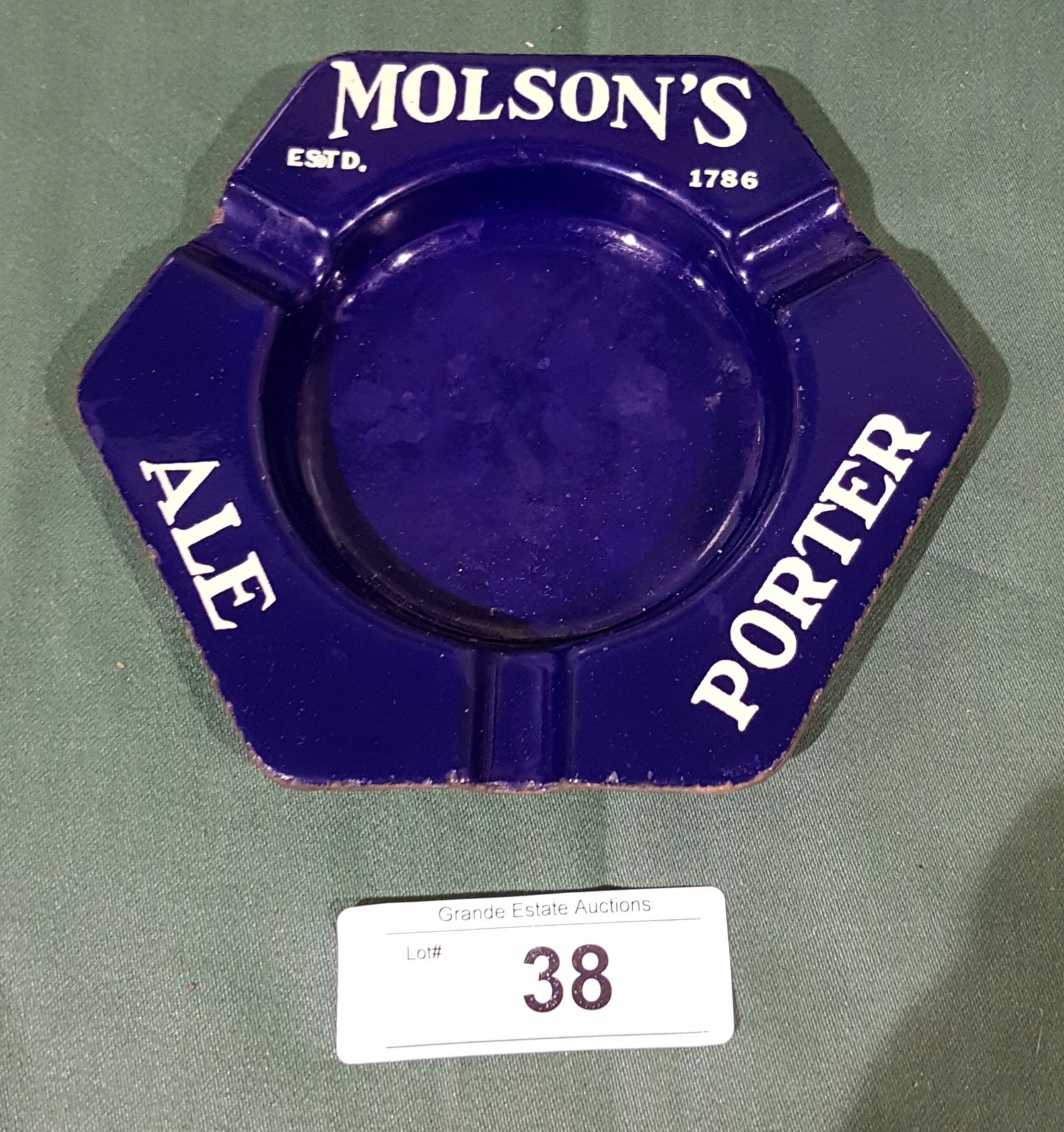 VINTAGE 1950'S MOLSON'S BEER PORCELAIN ASHTRAY