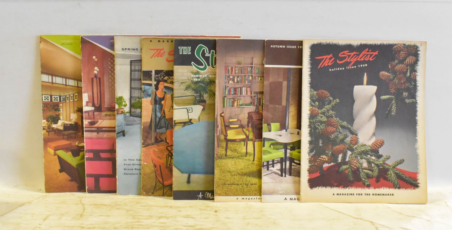 FOR THE HOME HOLIDAY ISSUE 1950, SPRING ISSUE 1951, AUTUMN ISSUE 1951, FIRST HOME FURNISHING ISSUE 1951, SUMMER ISSUE 1955, FURNTURE FASHIONS ISSUE 1956, HOLIDAY ISSUE 1957, SPRING ISSUE 1959, HOME PLANNING ISSUE 1959