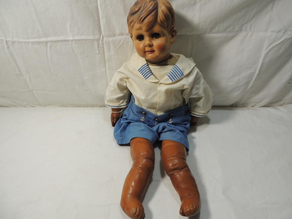 VINTAGE 1950 VINYL SAILOR DOLL VINYL DOLL STUFFED DOLL. SAILOR OUTFIT. SLEEP EYES COLLECTIBLE. RARE AS SHOWN. SEE PHOTO FOR MORE DETAILS.