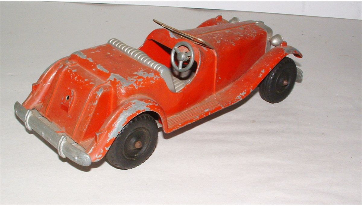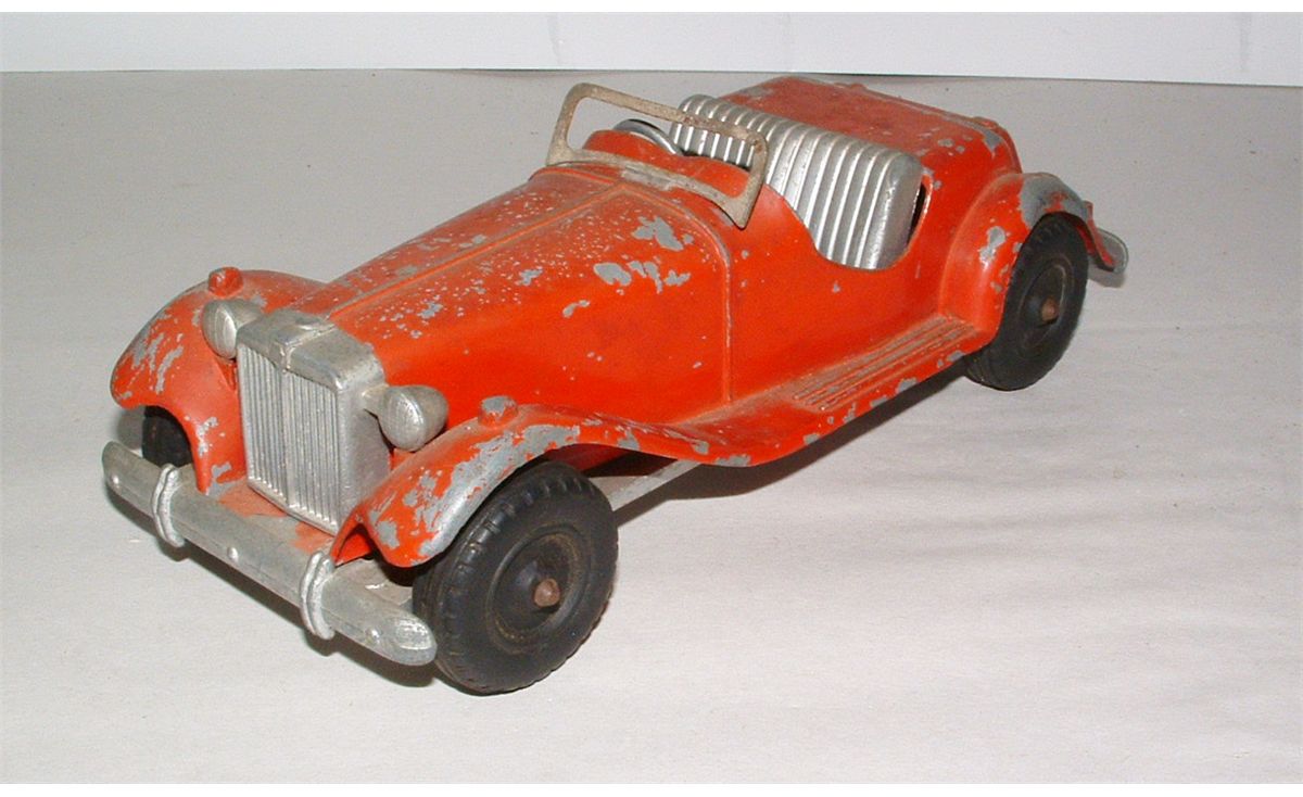 Car measures approx 9" x 3-1/2", looks to be in good condition, well played with but still has the windshield and the tired are in great shape. Hubley branding on the bottom.