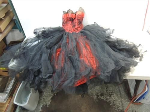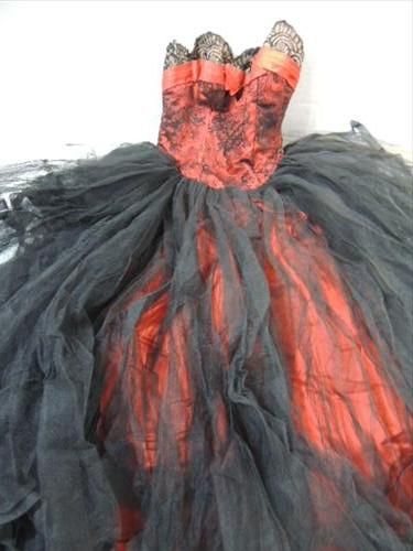 VINTAGE 1950S LADYS FORMAL SLEEVELESS DRESS. VERY CLASSY RED & BLACK RUFFLE DRESS. AS SHOWN. VIEW PICTURE FOR DETAIL.