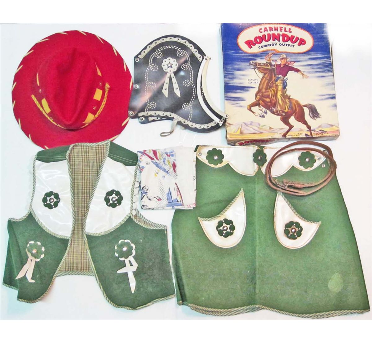 Outfit is a size 10/12. Inclues Hat, Belt, Bandana, Skirt, Vest, Spats and Box