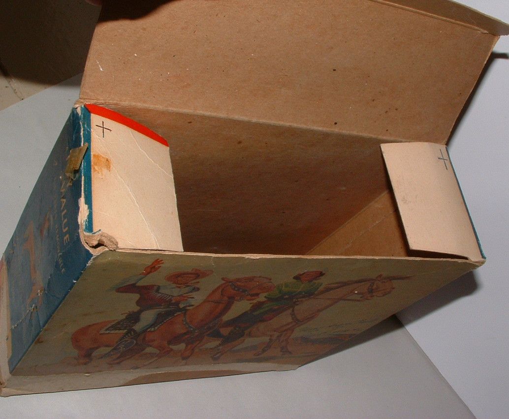 Looks to be in great condition with just minor, normal wear from age. No chips or cracks on the figures. The box is intact but has some tears, missing flaps and damage.