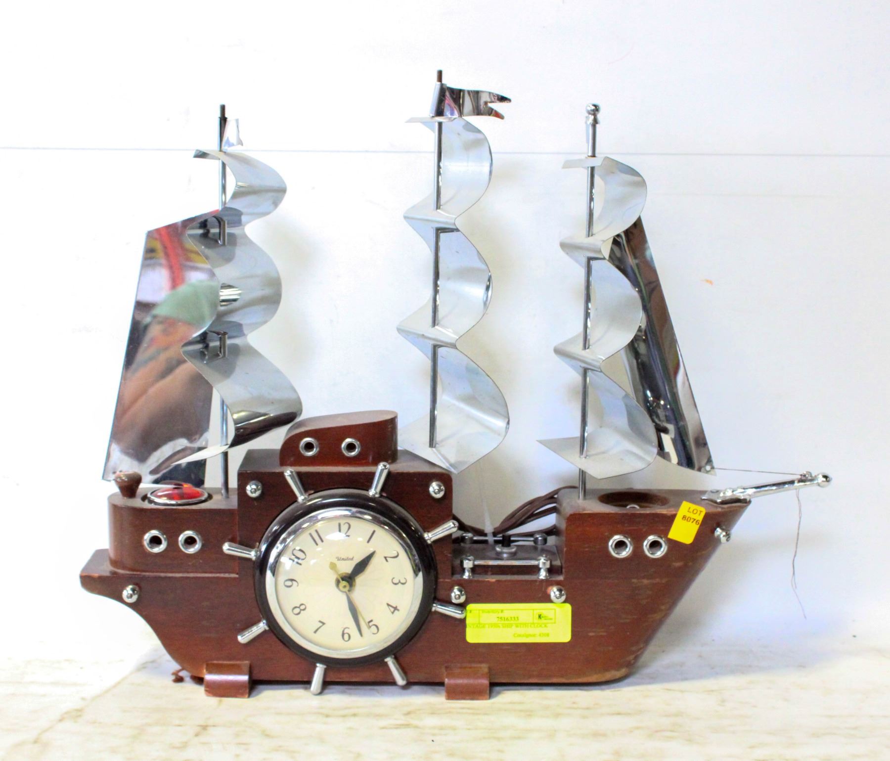 VINTAGE 1950s SHIP WITH CLOCK