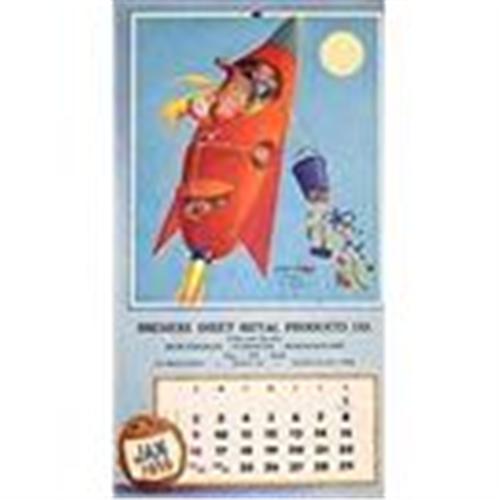 BREMERS SHEET METAL AD. CALENDAR -- 1955, 8¼? x 14?, Spiral Bound, Lawson Wood humorous monkey cartoon on each month