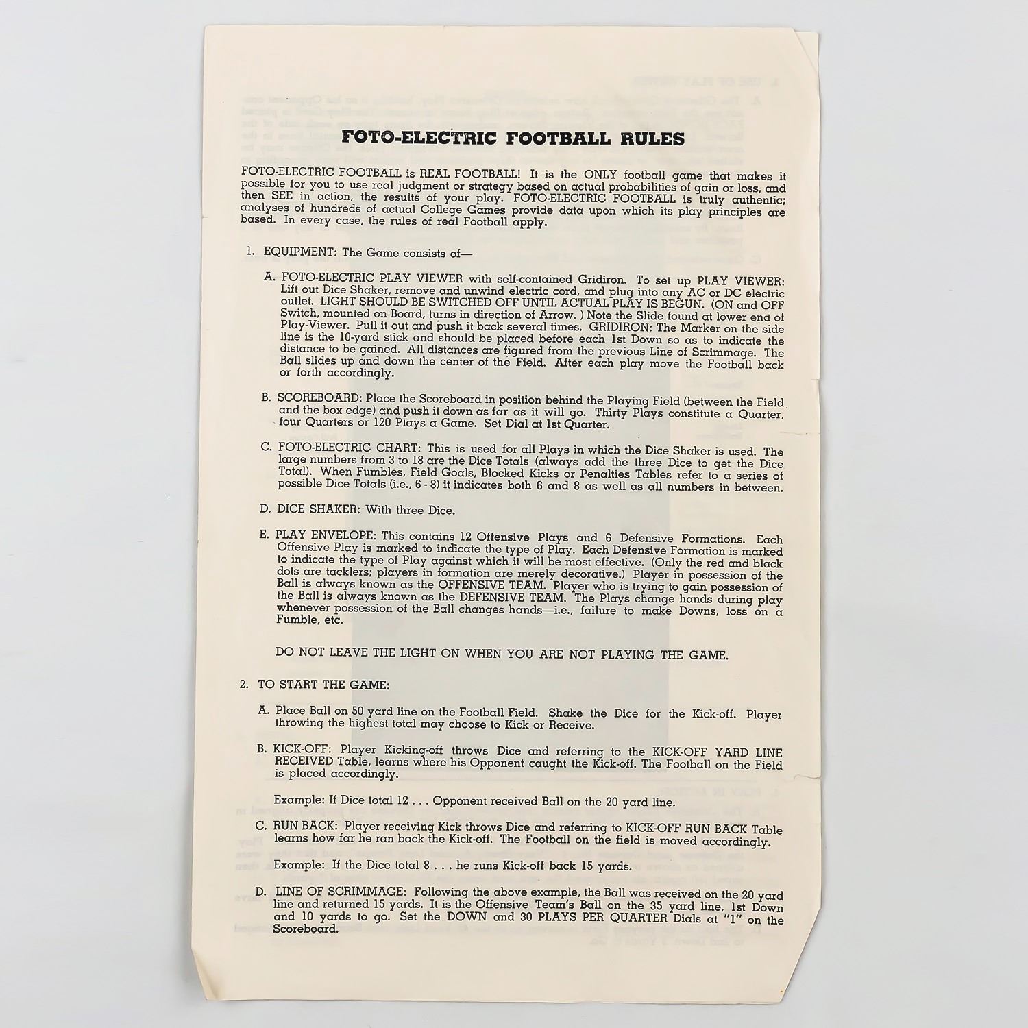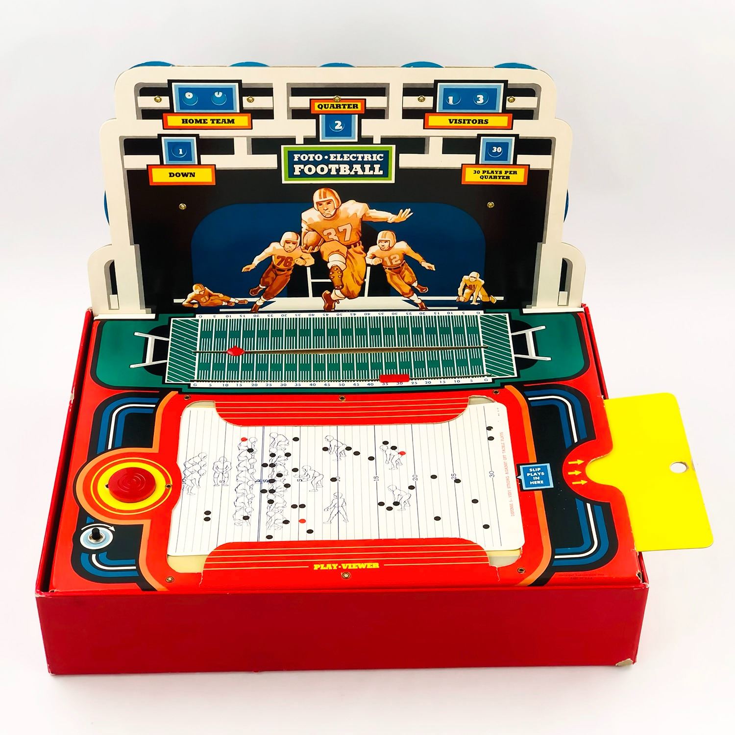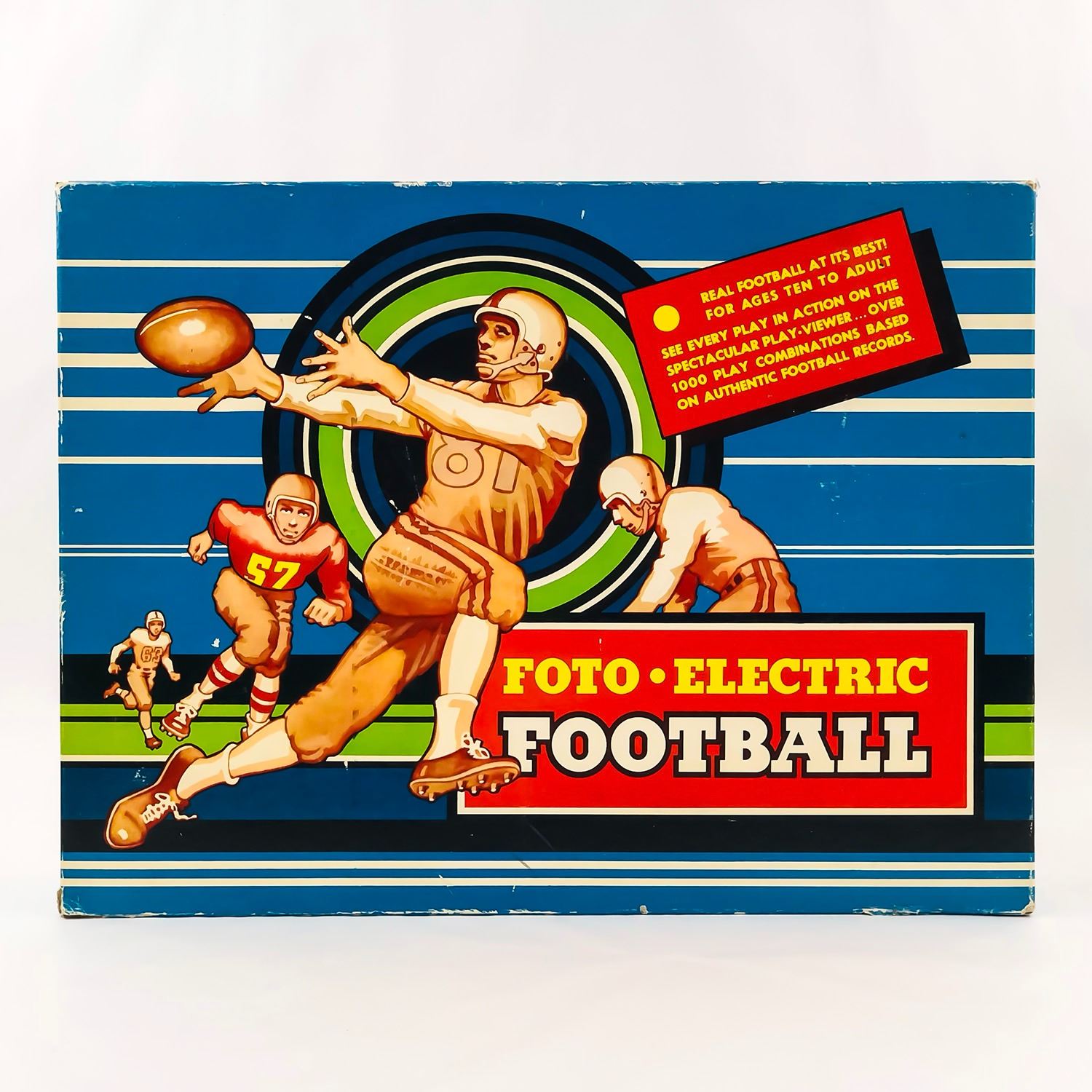 #9317 - GAME IS COMPLETE AND LIGHTS UP WHEN PLUGGED IN. CADACO-ELLIS, INC. - FOTO ELECTRIC FOOTBALL GAME ©1956. BOX MEASURES: 18.5” (47 CM) LONG BY 14” (35.5 CM) WIDE AND 3.75” (9.5 CM) HIGH***ITEM(S) LOCATED IN LETHBRIDGE ALBERTA. ALL ITEMS IN THIS AUCTION QUALIFY FOR OUR FREE TRANSPORT TO EDMONTON SERVICE. WORLDWIDE SHIPPING AVAILABLE