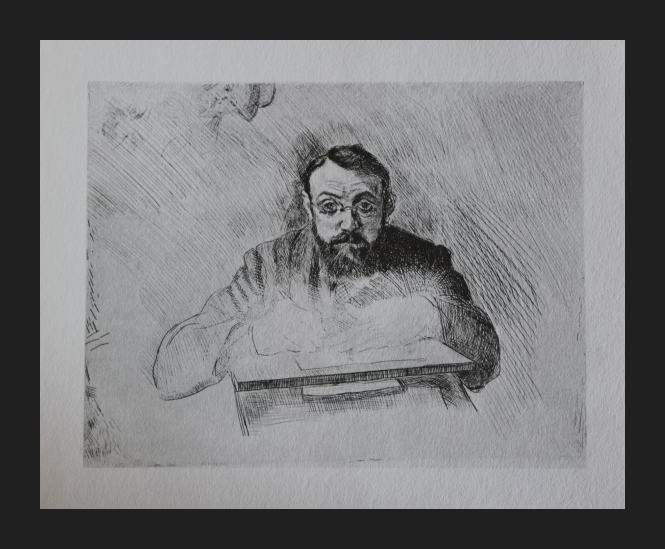 HENRI MATISSE "SELF PORTRAIT AS AN ETCHER" - VINTAGE LITHOGRAPH AFTER THE 1903 ETCHING - PRINTED IN 1956 - PUBLISHED BY GEORGE BRAZILLER NEW YORK - PROFESSIONALLY FRAMED AND MATTED - GALLERY STYLE WITH BLACK ACID FREE MAT AND SOLID WOOD BLACK FRAME - SHEET 11"X 8" - IMAGE APPX 4.5" X 6"