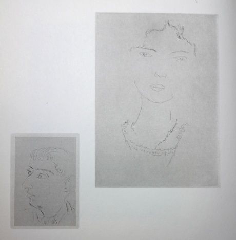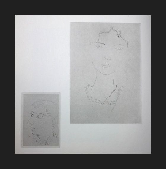 HENRI MATISSE "DEMETRIUS GALANIS" & "EMMA LA FORGE" - VINTAGE LITHOGRAPH AFTER THE 1914 ETCHINGS - PRINTED IN 1956 - PUBLISHED BY GEORGE BRAZILLER NEW YORK - PROFESSIONALLY FRAMED AND MATTED - GALLERY STYLE WITH BLACK ACID FREE MAT AND SOLID WOOD BLACK FRAME - SHEET 11"X 8" - IMAGES APPX 3" X 2" & 6" X 4"