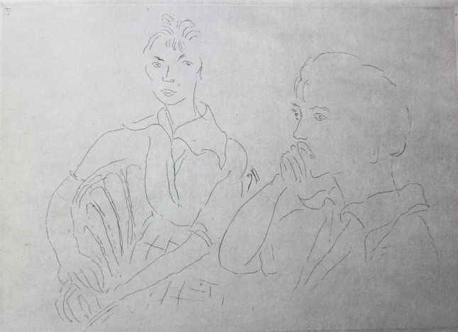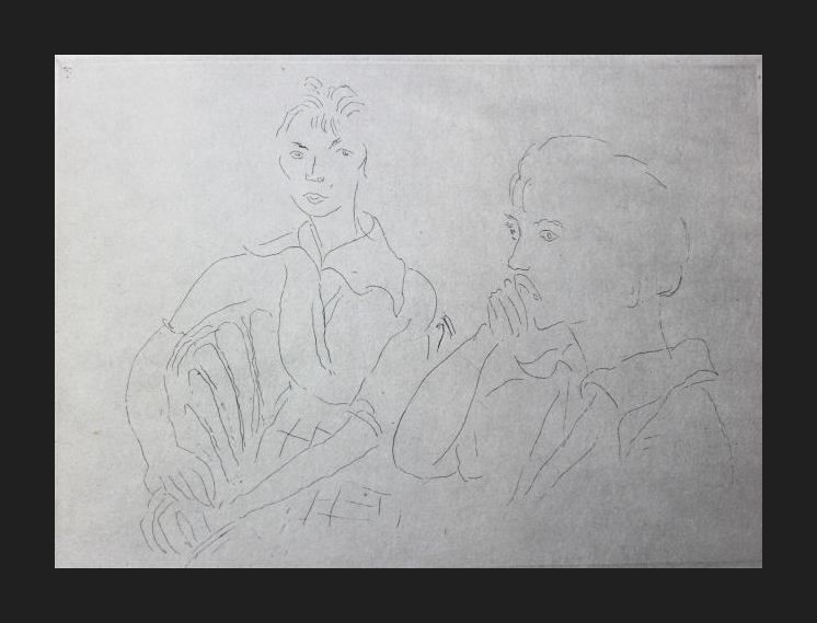 HENRI MATISSE "DOUBLE PORTRAIT OF JOSETTE GRIS" - VINTAGE LITHOGRAPH AFTER THE 1914 ETCHING - PRINTED IN 1956 - PUBLISHED BY GEORGE BRAZILLER NEW YORK - PROFESSIONALLY FRAMED AND MATTED - GALLERY STYLE WITH BLACK ACID FREE MAT AND SOLID WOOD BLACK FRAME - SHEET 11"X 8" - IMAGE APPX 4.75" X 6.75"