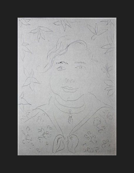 HENRI MATISSE "MARGOT" - VINTAGE LITHOGRAPH AFTER THE 1914 ETCHING - PRINTED IN 1956 - PUBLISHED BY GEORGE BRAZILLER NEW YORK - PROFESSIONALLY FRAMED AND MATTED - GALLERY STYLE WITH BLACK ACID FREE MAT AND SOLID WOOD BLACK FRAME - SHEET 11"X 8" - IMAGE APPX 6.5" X 4.5"