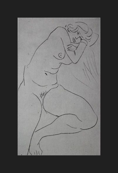 HENRI MATISSE "HEAD IN ARMS" - VINTAGE LITHOGRAPH AFTER THE 1929 ETCHING - PRINTED IN 1956 - PUBLISHED BY GEORGE BRAZILLER NEW YORK - PROFESSIONALLY FRAMED AND MATTED - GALLERY STYLE WITH BLACK ACID FREE MAT AND SOLID WOOD BLACK FRAME - SHEET 11"X 8" - IMAGE APPX 6.5" X 4"
