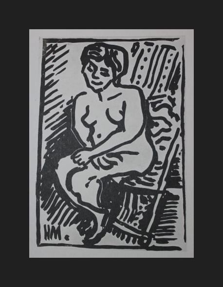 HENRI MATISSE "SEATED NUDE" - VINTAGE LITHOGRAPH AFTER THE 1906 LINOLEUM CUT - PRINTED IN 1956 - PUBLISHED BY GEORGE BRAZILLER NEW YORK - PROFESSIONALLY FRAMED AND MATTED - GALLERY STYLE WITH BLACK ACID FREE MAT AND SOLID WOOD BLACK FRAME - SHEET 11"X 8" - IMAGE APPX 6.75" X 4.75"