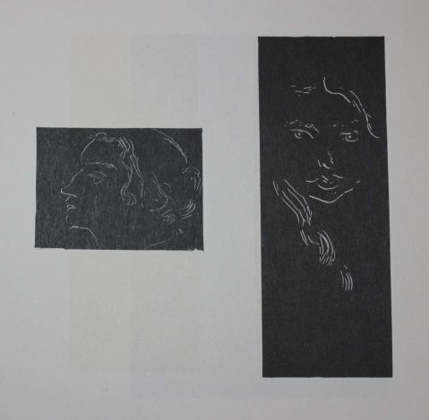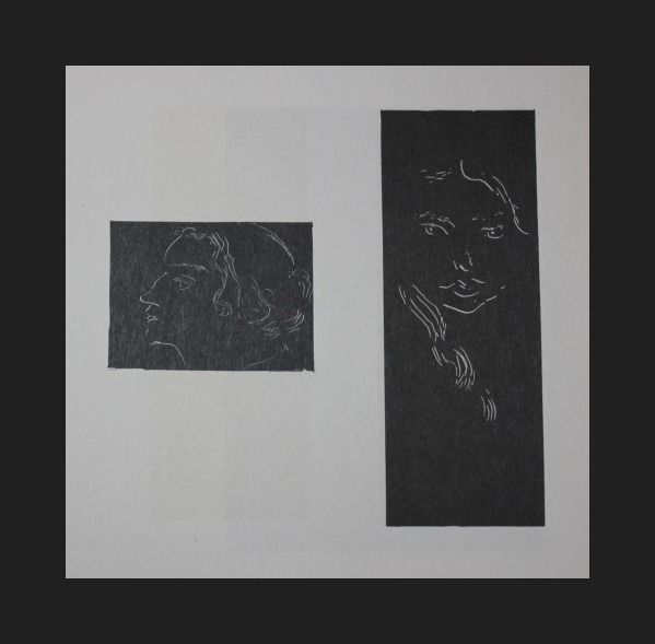 HENRI MATISSE "MME ANDRE DERAIN" & "IRENE VIGNIER"- VINTAGE LITHOGRAPH AFTER THE 1914 MONOTYPES - PRINTED IN 1956 - PUBLISHED BY GEORGE BRAZILLER NEW YORK - PROFESSIONALLY FRAMED AND MATTED - GALLERY STYLE WITH BLACK ACID FREE MAT AND SOLID WOOD BLACK FRAME - IMAGES APPX 2" X 2.5" & 5" X 2"