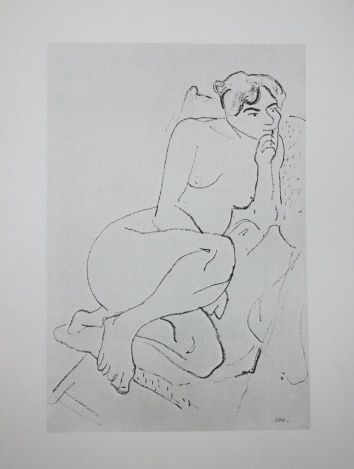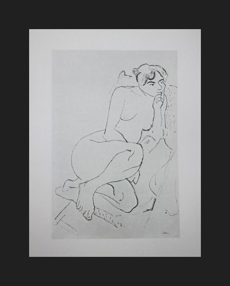 HENRI MATISSE "NUDE SEATED IN A FOLDING CHAIR" - VINTAGE LITHOGRAPH AFTER THE 1906 LITHOGRAPH - PRINTED IN 1956 - PUBLISHED BY GEORGE BRAZILLER NEW YORK - PROFESSIONALLY FRAMED AND MATTED - GALLERY STYLE WITH BLACK ACID FREE MAT AND SOLID WOOD BLACK FRAME - IMAGE APPX 7" X 4.75"