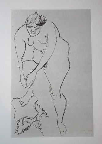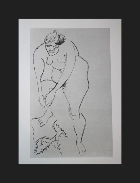 HENRI MATISSE "NUDE WITH A FOOT STOOL" - VINTAGE LITHOGRAPH AFTER THE 1906 LITHOGRAPH - PRINTED IN 1956 - PUBLISHED BY GEORGE BRAZILLER NEW YORK - PROFESSIONALLY FRAMED AND MATTED - GALLERY STYLE WITH BLACK ACID FREE MAT AND SOLID WOOD BLACK FRAME - IMAGE APPX 7.75" X 5"