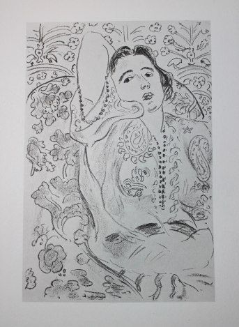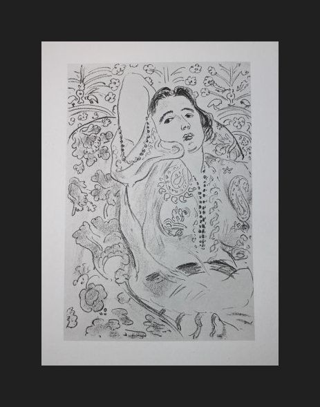 HENRI MATISSE "ARABESQUE" - VINTAGE LITHOGRAPH AFTER THE 1924 LITHOGRAPH - PRINTED IN 1956 - PUBLISHED BY GEORGE BRAZILLER NEW YORK - PROFESSIONALLY FRAMED AND MATTED - GALLERY STYLE WITH BLACK ACID FREE MAT AND SOLID WOOD BLACK FRAME - IMAGE APPX 7.5" X 5"