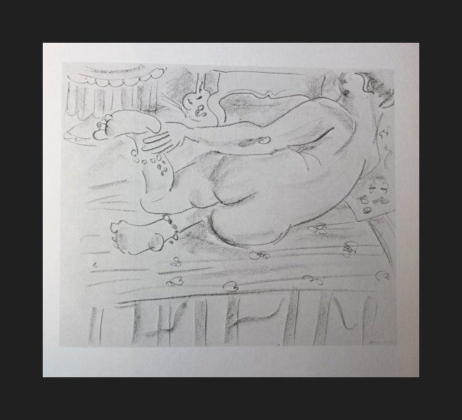 HENRI MATISSE "RECLINING NUDE" - VINTAGE LITHOGRAPH AFTER THE 1929 LITHOGRAPH - PRINTED IN 1956 - PUBLISHED BY GEORGE BRAZILLER NEW YORK - PROFESSIONALLY FRAMED AND MATTED - GALLERY STYLE WITH BLACK ACID FREE MAT AND SOLID WOOD BLACK FRAME - IMAGE APPX 5.5" X 6.5"