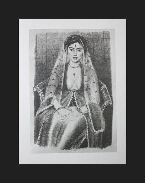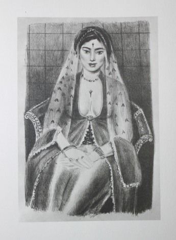 HENRI MATISSE "THE PERSIAN" - VINTAGE LITHOGRAPH AFTER THE 1929 LITHOGRAPH - PRINTED IN 1956 - PUBLISHED BY GEORGE BRAZILLER NEW YORK - PROFESSIONALLY FRAMED AND MATTED - GALLERY STYLE WITH BLACK ACID FREE MAT AND SOLID WOOD BLACK FRAME - IMAGE APPX 7" X 5"