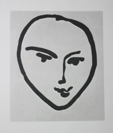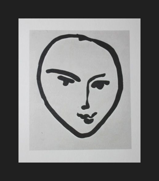 HENRI MATISSE "HEAD (FULL FACE)" - VINTAGE LITHOGRAPH AFTER THE 1951-52 AQUATINT - PRINTED IN 1956 - PUBLISHED BY GEORGE BRAZILLER NEW YORK - PROFESSIONALLY FRAMED AND MATTED - GALLERY STYLE WITH BLACK ACID FREE MAT AND SOLID WOOD BLACK FRAME - IMAGE APPX 5.5" X 4.75"