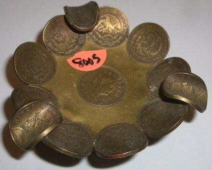 VINTAGE 1960'S MEXICAN COIN HANDMADE ASHTRAY *VERY UNIQUE & NICE*!! COIN ASHTRAY CAME OUT OF ESTATE!! ***Coin, Currency & All Items Listed in this auction - Grades, Conditions and Values are not Safe Deposit Coins LLC Responsibilty. Grades, Condition and Values are determined by Consigner(s) & Buyers ONLY