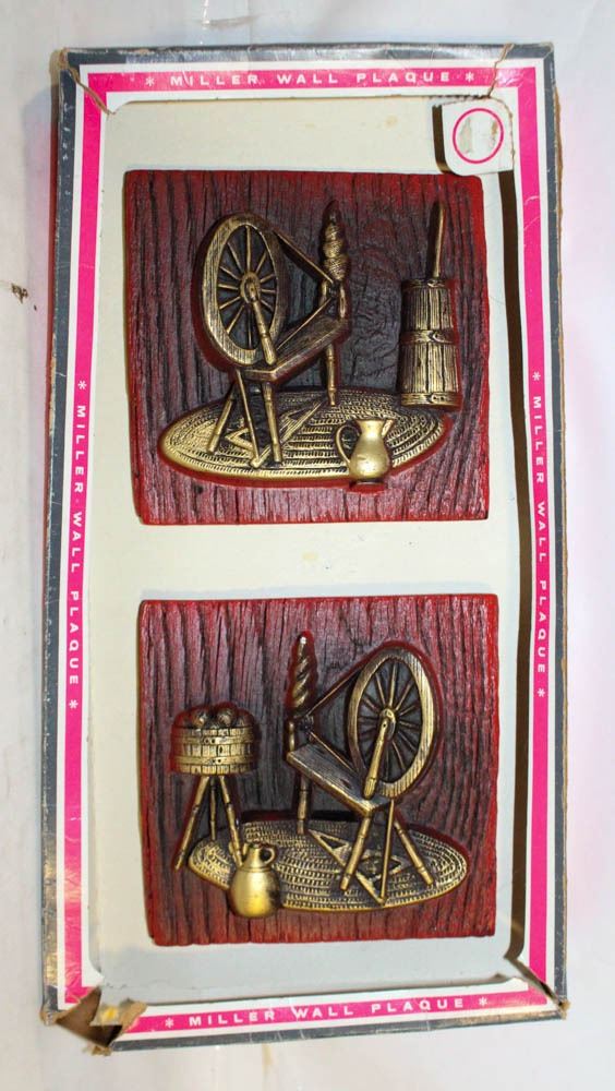 SPINNING WHEELS HAND PAINTED SET OF 2 IN ORIGINAL BOX