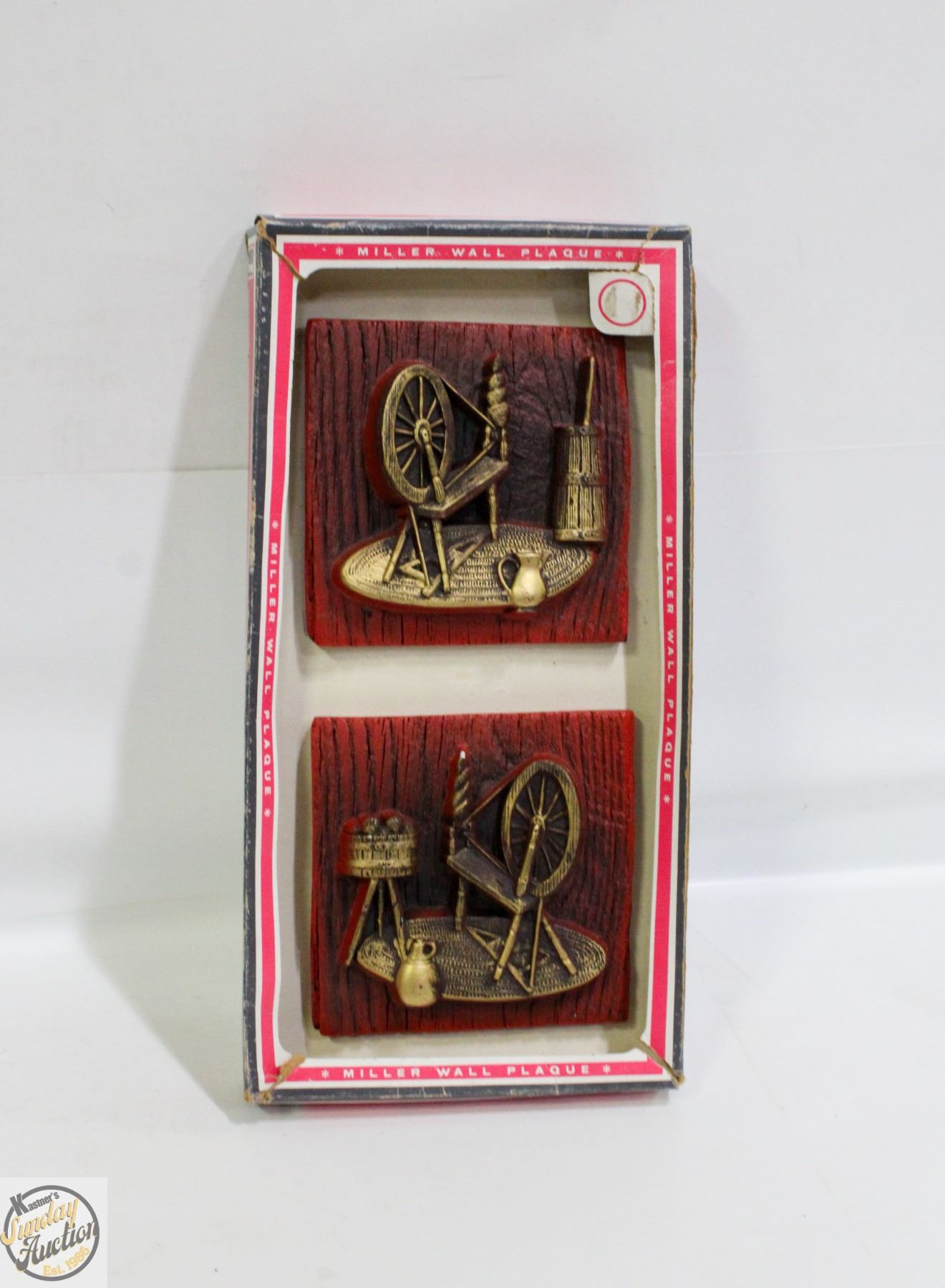SPINNING WHEELS HAND PAINTED SET OF 2 IN ORIGINAL BOX