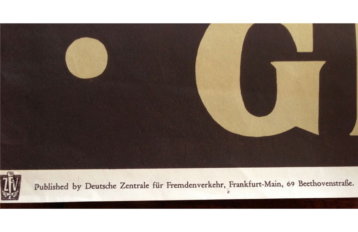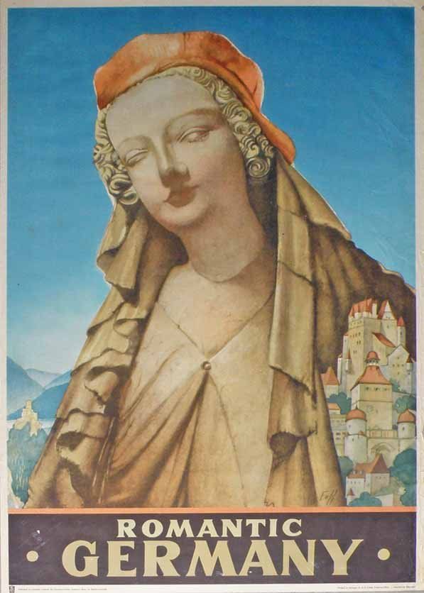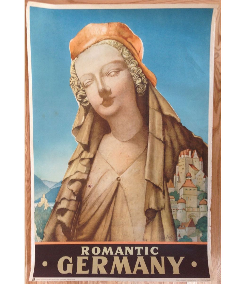 VINTAGE 1960's TRAVEL POSTER - GERMANY 1930s poster with artwork by Fuss. Printed by K.G. Lohse, Frankfurt. Light creasing and wear. Size: 40" x 26 3/4"