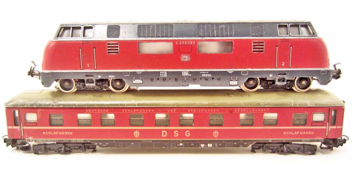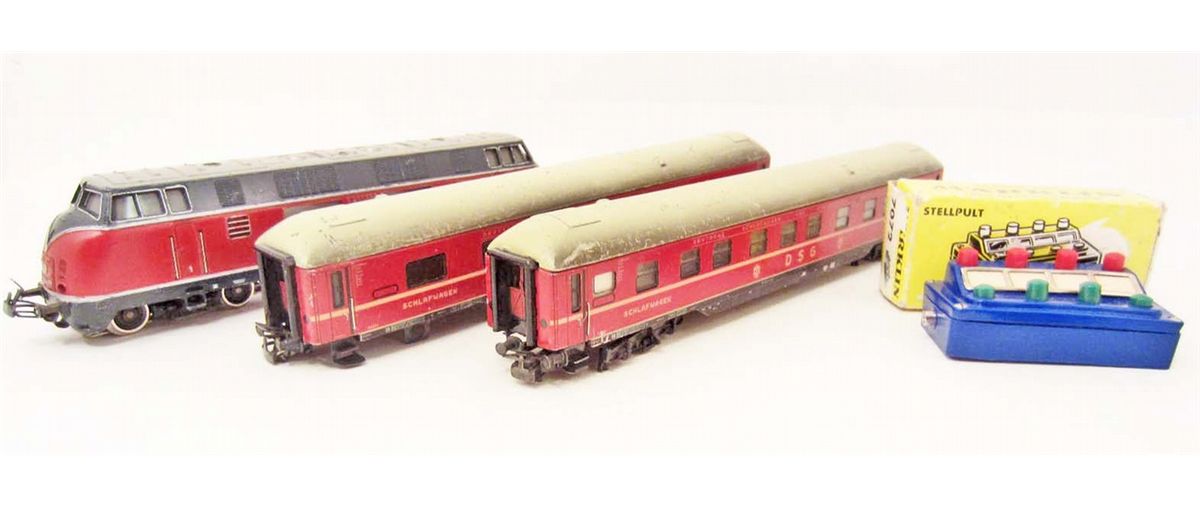 Passenger Train set. Includes 3 Train Cars and a Marklin Controler. HO Scale.