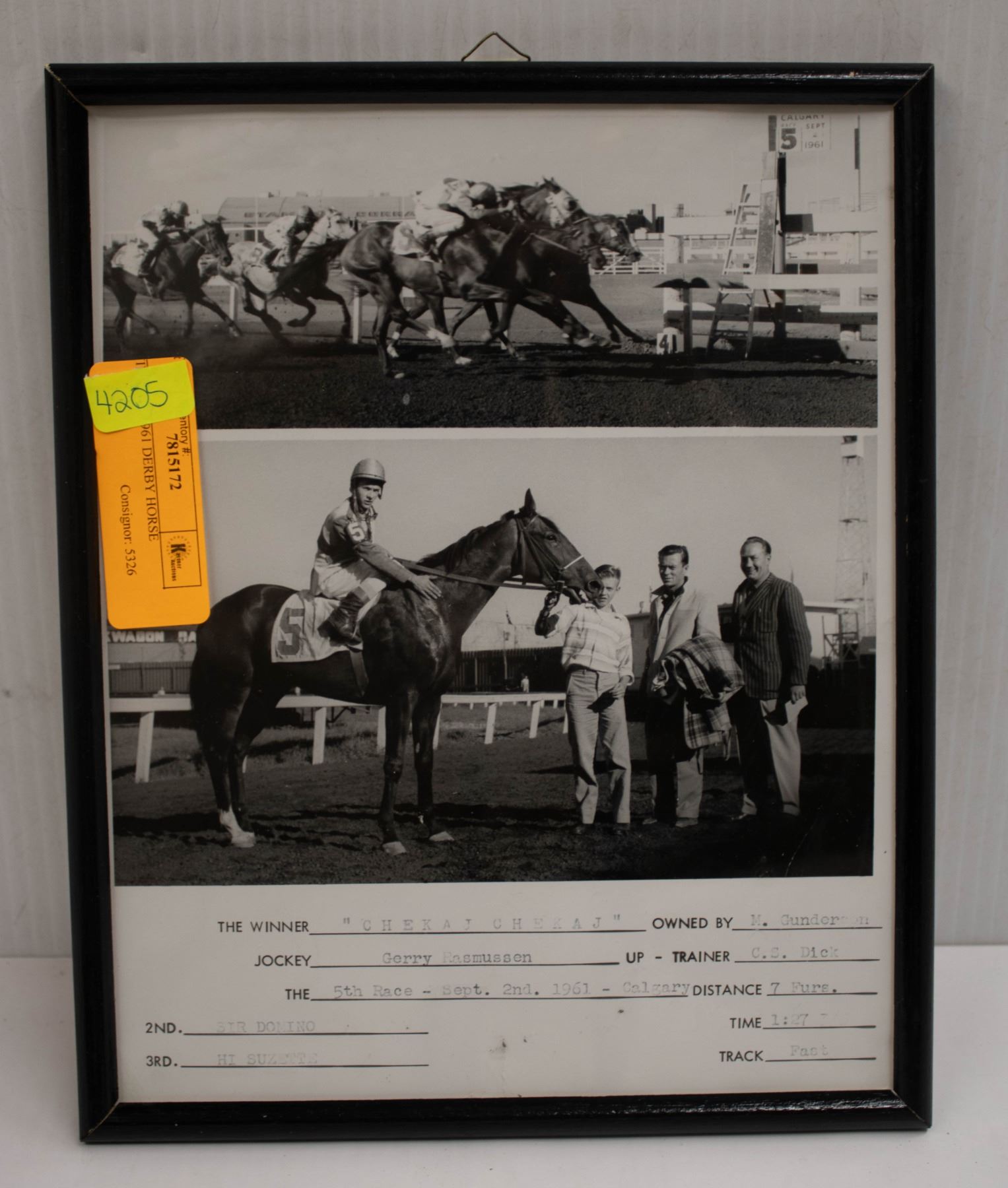 WINNER 5TH RAE" CHEKAJ CHEKAJ" JOCKEY GERRY RASMUSSAN CALGARY, AB ORIGINAL BLACK & WHITE PICTURE 8" X 10" APPROX.