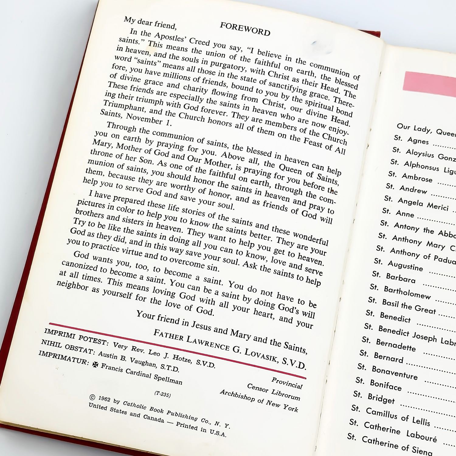 #8395 - NEW PICTURE BOOK OF SAINTS - SAINT JOSEPH EDITION - HARDCOVER 118 PAGES. CATHOLIC BOOK PUBLISHING CO. 1962. MEASURES: 6” X 9”***ITEM(S) LOCATED IN LETHBRIDGE ALBERTA. FREE TRANSPORT TO EDMONTON OFFICE AVAILABLE FOR THIS AUCTION. WORLDWIDE SHIPPING IS AVAILABLE FOR ALL ITEMS