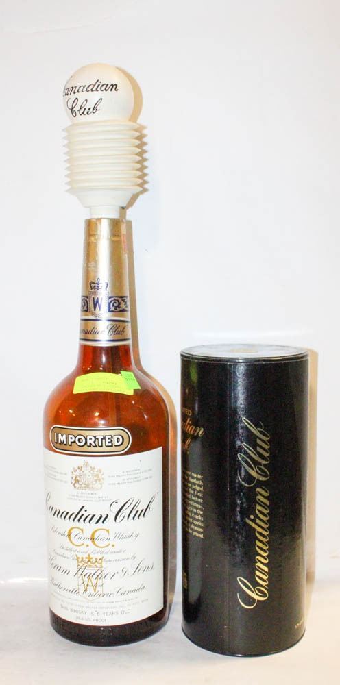 VINTAGE 1963 CANADIAN CLUB TEXAS MICKEY BOTTLE & P