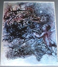 VINTAGE 1968 DALI LITHOGRAPH - "SAINT ANNE AND SAINT JOHN" - AFTER THE 1960 PAINTING - PRINTED IN 1968 WITH TIPPED IN PLATES GIVING THE LITHOGRAPH WONDERFUL VIVID TRUE TO THE ORIGINAL PAINTING COLOR AND CLARITY - BEAUTIFULLY FRAMED AND MATTED - IMAGE APPX 6.5" X 9" - FRAMED APPX 13" X 16" --