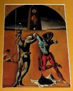 VINTAGE 1968 DALI LITHOGRAPH - "POETRY OF AMERICA" - AFTER THE PAINTING DONE AS A TRIBUTE TO HIS TIME SPENT IN AMERICA IN THE 1940'S - PRINTED IN 1968 WITH TIPPED IN PLATES GIVING THE LITHOGRAPH WONDERFUL VIVID TRUE TO THE ORIGINAL PAINTING COLOR AND CLARITY - BEAUTIFULLY FRAMED AND MATTED - IMAGE APPX 6.5" X 9.75" - FRAMED APPX 13" X 16" --