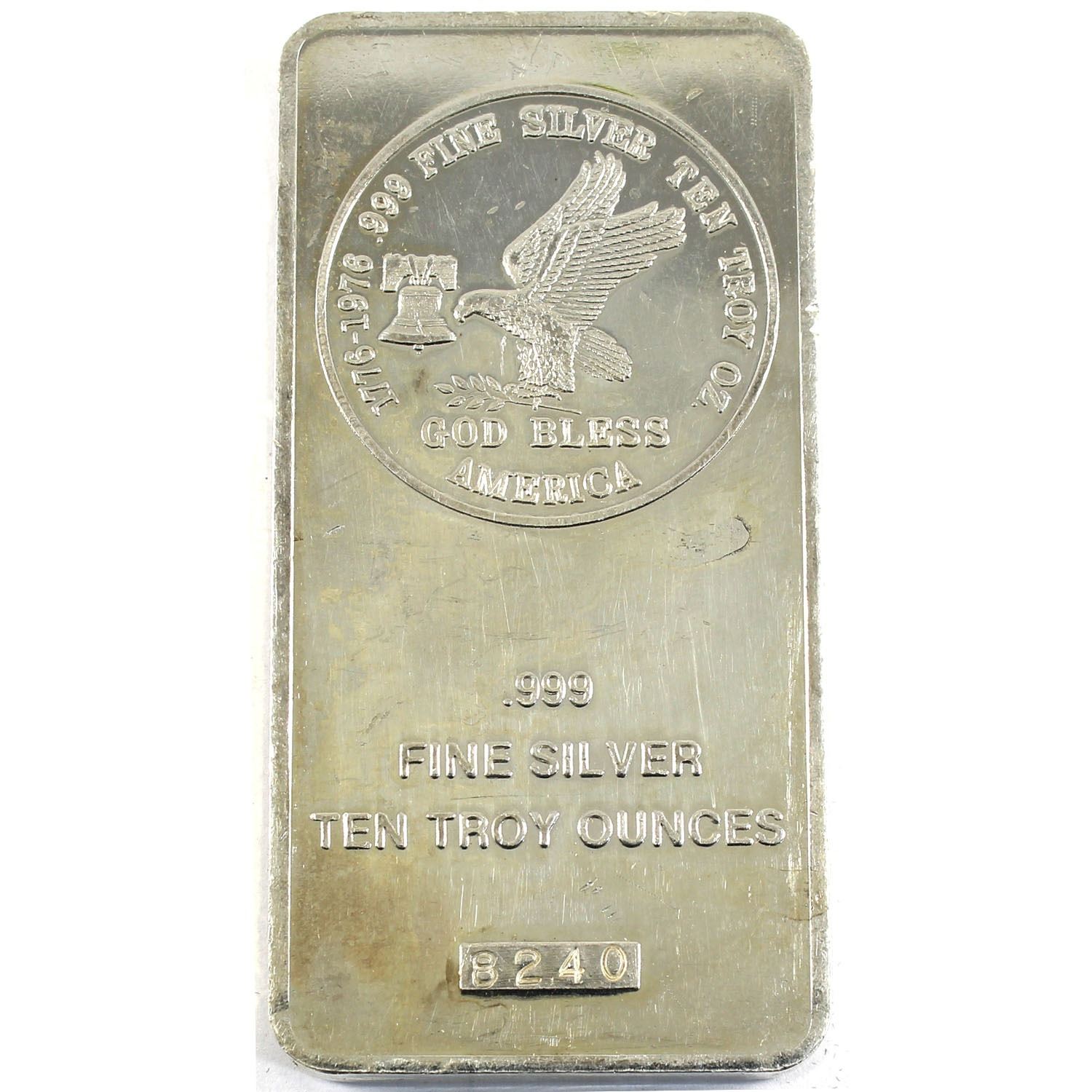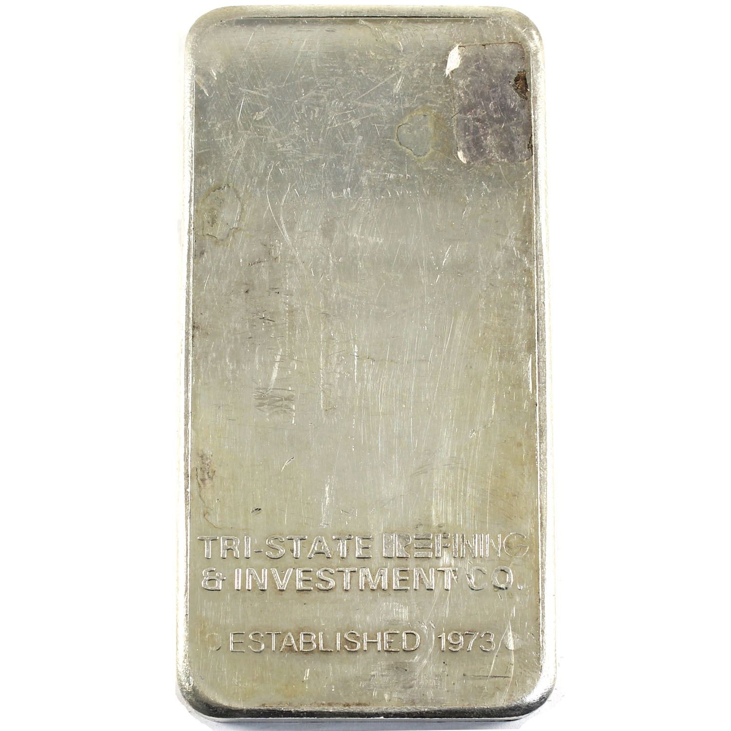 VINTAGE 1976 10oz Tri-State Refining & Investment Co. .999 Fine Silver Bar (toned & scratched). TAX Exempt