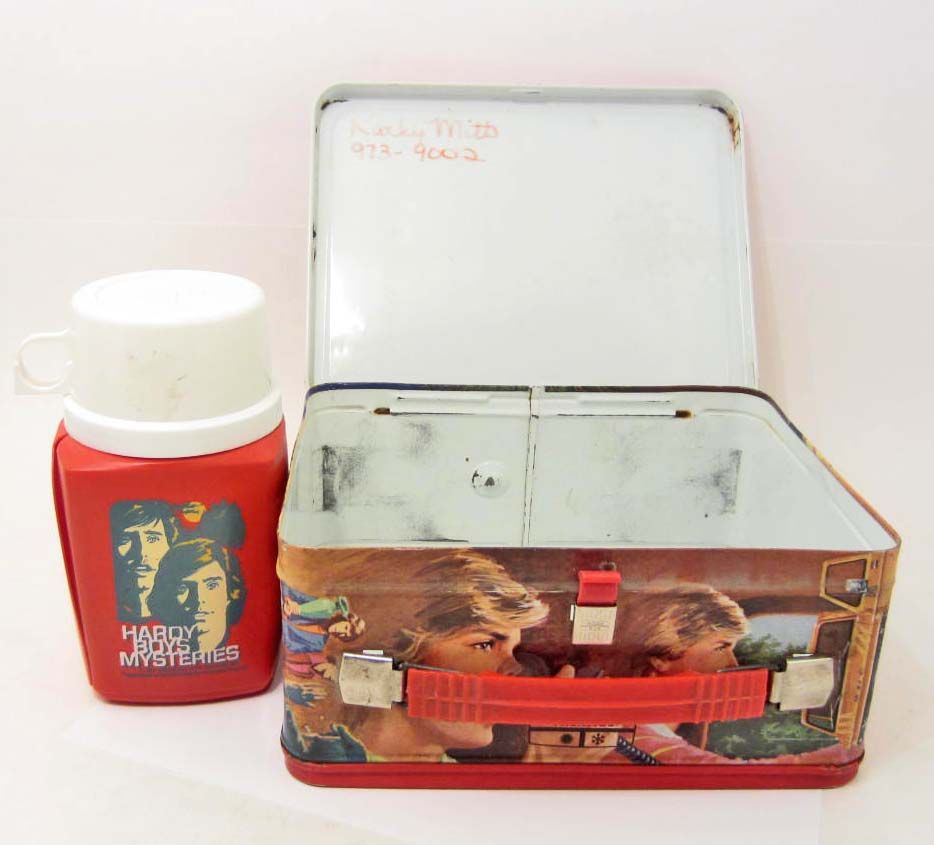 Lunch box is in very nice condition. The Thermos is complete but does have a split down side.