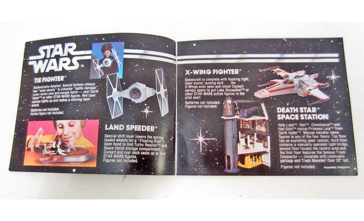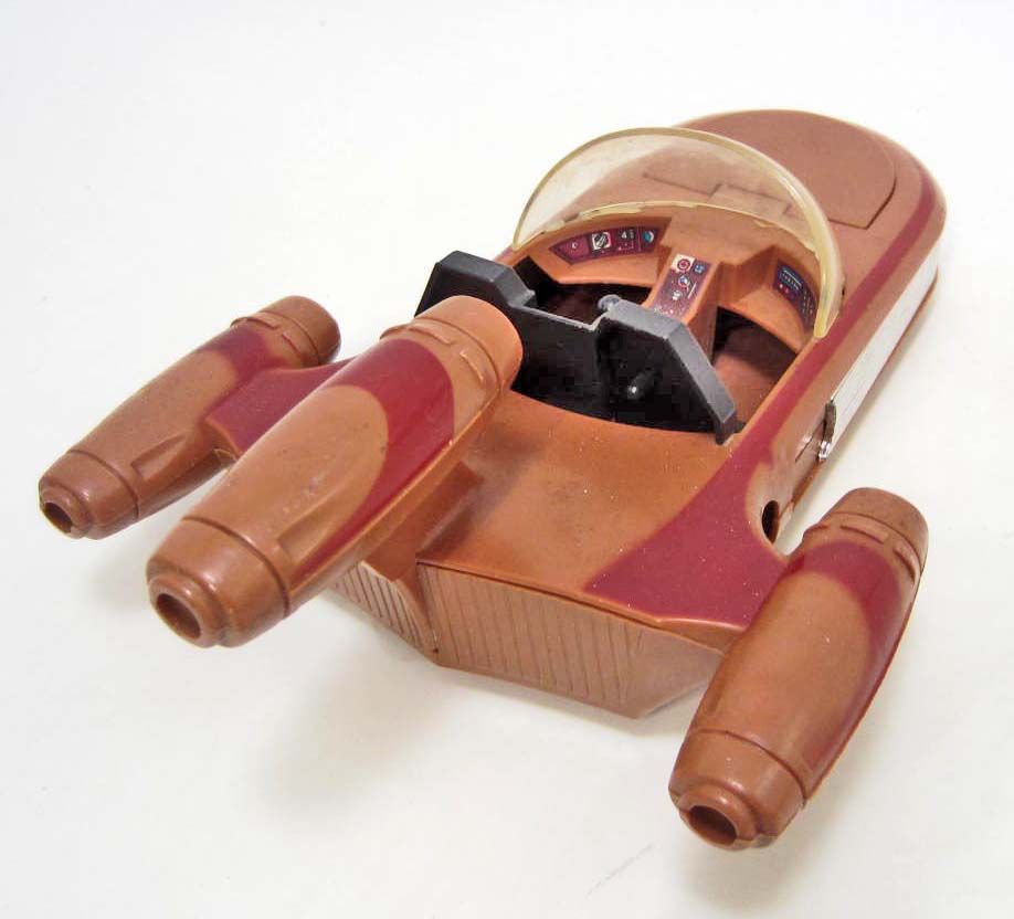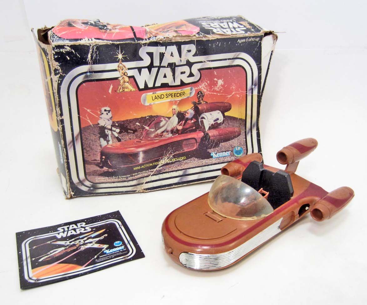 Land Speeder. In the original box with Promo catalog. Still works, good played with condition, missing front gun. Box is in rough shape.