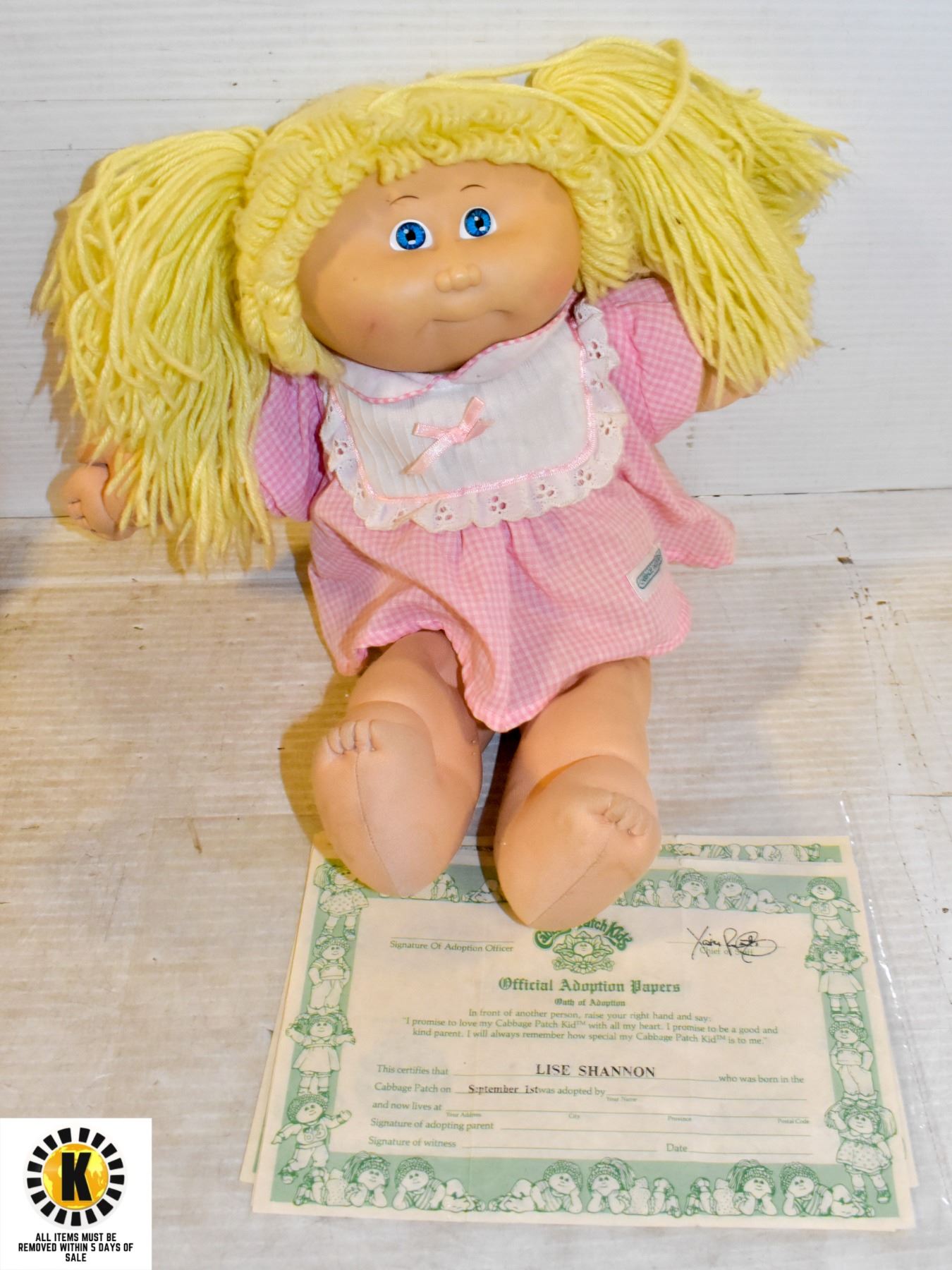KIDS DOLL WITH ADOPTION PAPERS & BIRTH CERTIFICATE